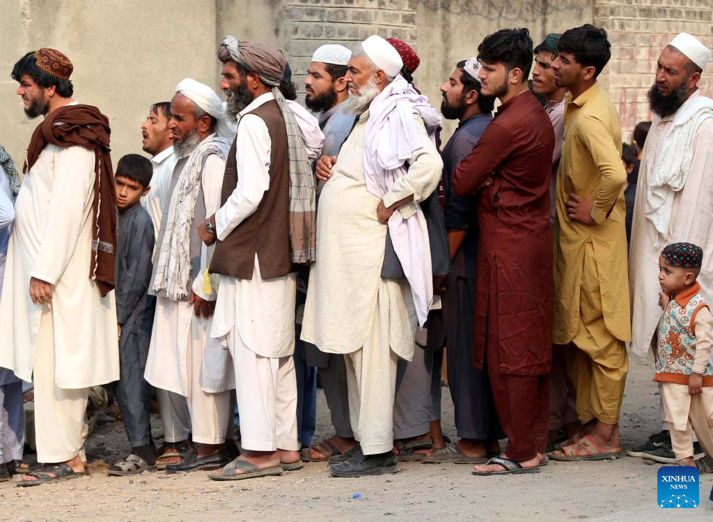 Afghan refugees wait for their registration before returning to their home country, on the outskirts of northwest Pakistan's Peshawar, Oct. 30, 2023. (Photo by Umar Qayyum/Xinhua)