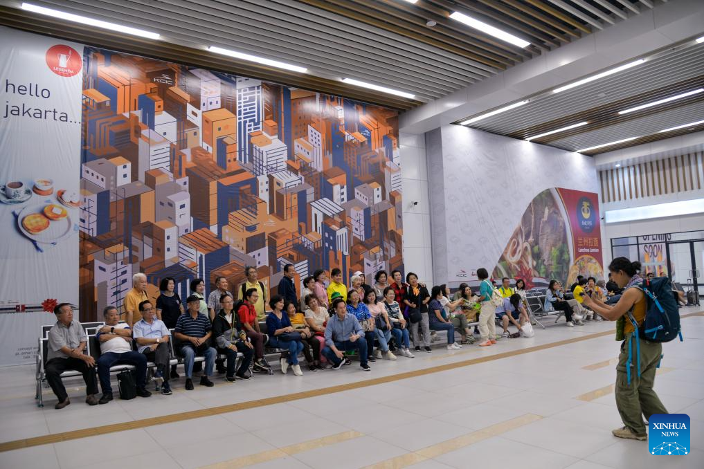 People pose for photos at Halim Station in Jakarta, Indonesia, Nov. 5, 2023. The Jakarta-Bandung High-Speed Railway (HSR), connecting Jakarta and the fourth largest city Bandung, is a flagship project that synergizes the China-proposed Belt and Road Initiative and Indonesia's Global Maritime Fulcrum strategy.