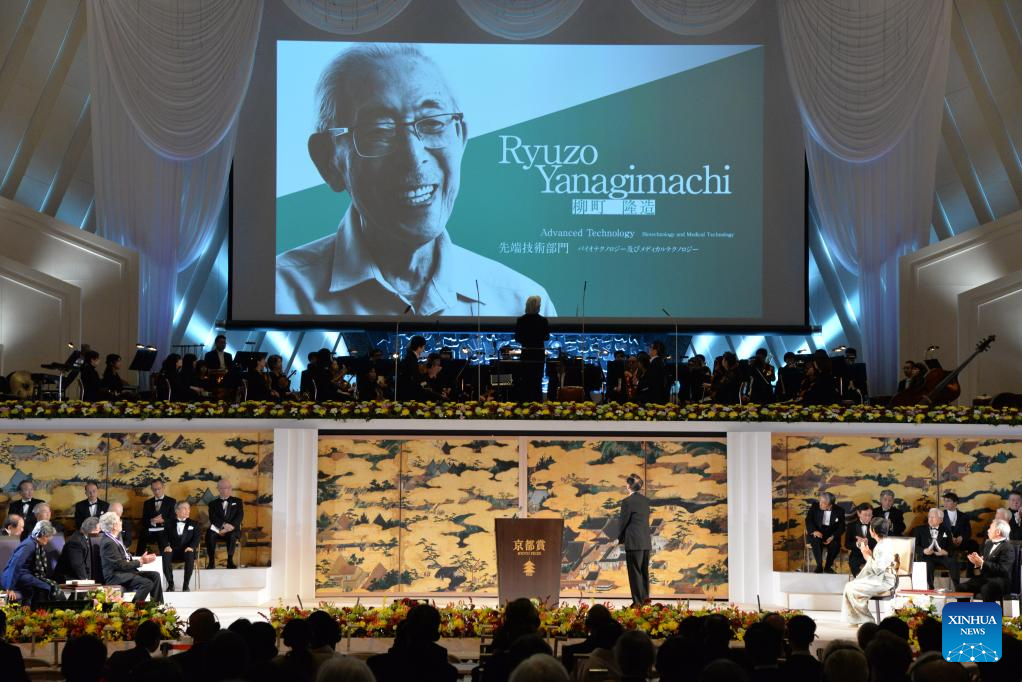 KYOTO, Japan, Nov. 10 (Xinhua) -- Three scholars were awarded the 38th annual Kyoto Prize at a ceremony in Japan's Kyoto on Friday in recognition of their great achievements in the fields of advanced technology, basic sciences and arts and philosophy, respectively.