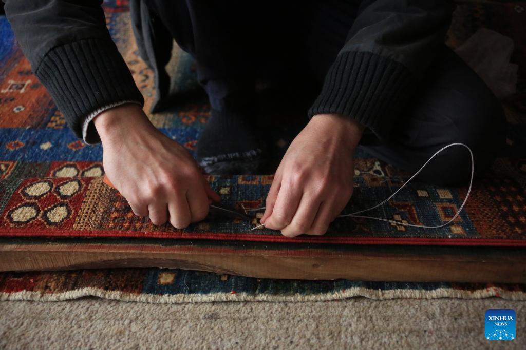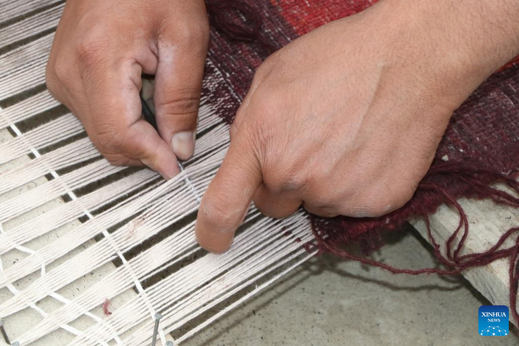 A man weaves a carpet in Kabul, Afghanistan, Nov. 8, 2023. (Photo by Saifurahman Safi/Xinhua)