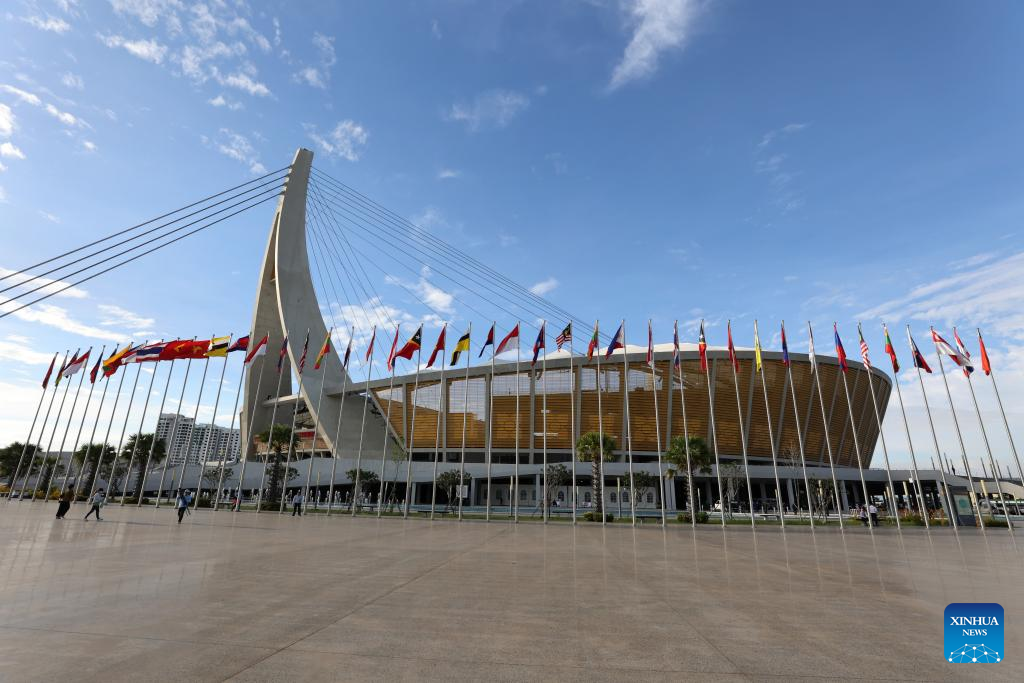 This photo taken on Nov. 17, 2023 shows the China-aided Morodok Techo National Stadium in Phnom Penh, Cambodia. Cambodia on Friday celebrated its success in hosting Southeast Asian (SEA) Games for the first time, saying that the biennial multi-sport event has given a boost to the country's sports, tourism and economy.(Photo by Sovannara/Xinhua)