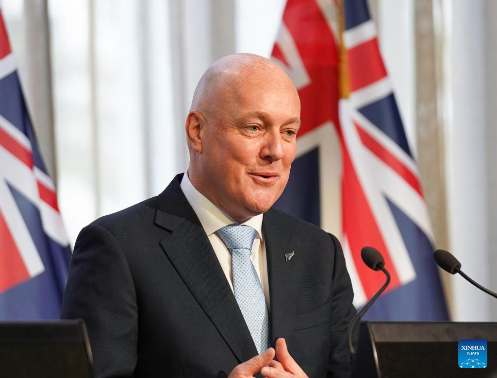 National Party's leader and incoming Prime Minister Christopher Luxon speaks at the parliament in Wellington, New Zealand, Nov. 24, 2023. Three New Zealand political parties announced on Friday the lineup for a new coalition government after weeks of negotiations. The new coalition government of National Party, ACT New Zealand party and New Zealand First party will be stable, effective and will deliver for all New Zealanders, National's leader and incoming Prime Minister Christopher Luxon said during the signing ceremony at the parliament. (Prime Minister Office of New Zealand/Handout via Xinhua)