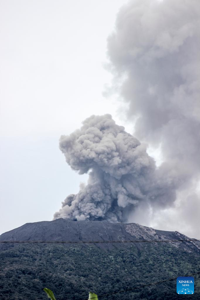 Marapi volcano spews volcanic materials in West Sumatra, Indonesia, Dec. 6, 2023. (Photo by Ade Yuandha/Xinhua)