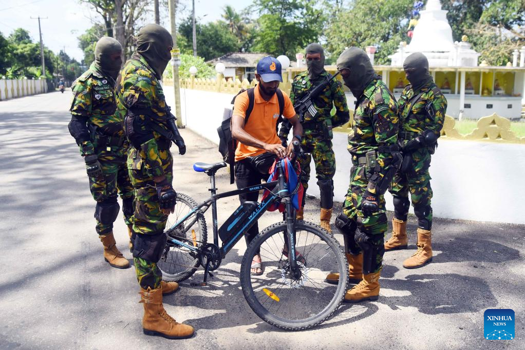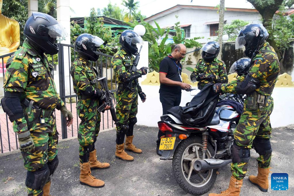 Members of the Sri Lankan police's Special Task Force inquire a biker in Colombo, Sri Lanka, Dec. 22, 2023. Sri Lankan police have arrested over 10,000 suspects in connection with drug-related offenses and other criminal activities in a recently launched operation, the police said on Friday.