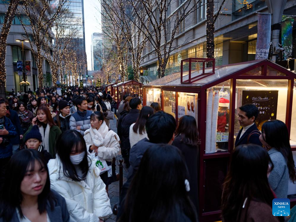People visit a Christmas market near the Tokyo Station in Tokyo, Japan, Dec. 24, 2023. (Xinhua/Zhang Xiaoyu)
