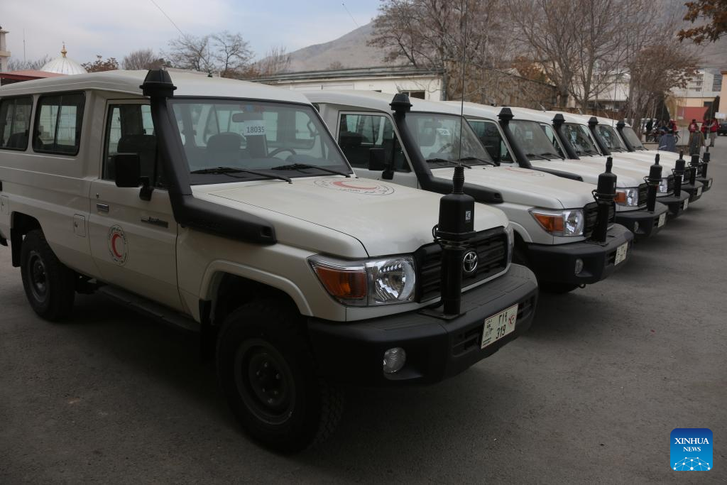 The ICRC handed over 16 ambulances to the Red Crescent Society of Afghanistan on Tuesday. (Photo by Saifurahman Safi/Xinhua)