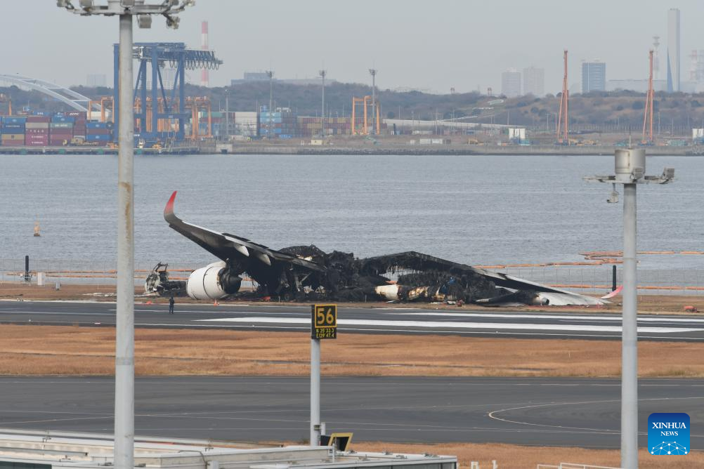 TOKYO, Jan. 3 (Xinhua) -- Japan's transport authorities on Wednesday started probing the cause of a collision between a Japan Coast Guard aircraft and a Japan Airlines (JAL) passenger plane at Tokyo's Haneda Airport on Tuesday evening, which led to over 300 flight cancellations.