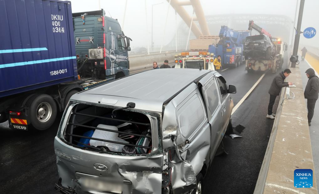 About 30 vehicles collided one after another at around 5:24 a.m. local time (2024 GMT Wednesday) on a bridge in Sejong, some 110 km south of the capital Seoul.