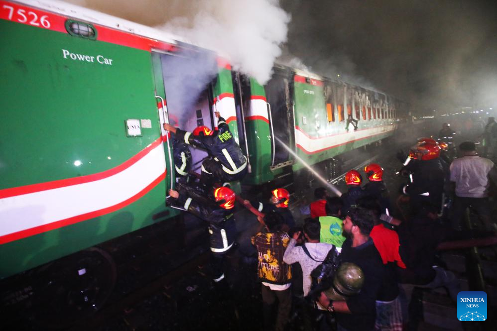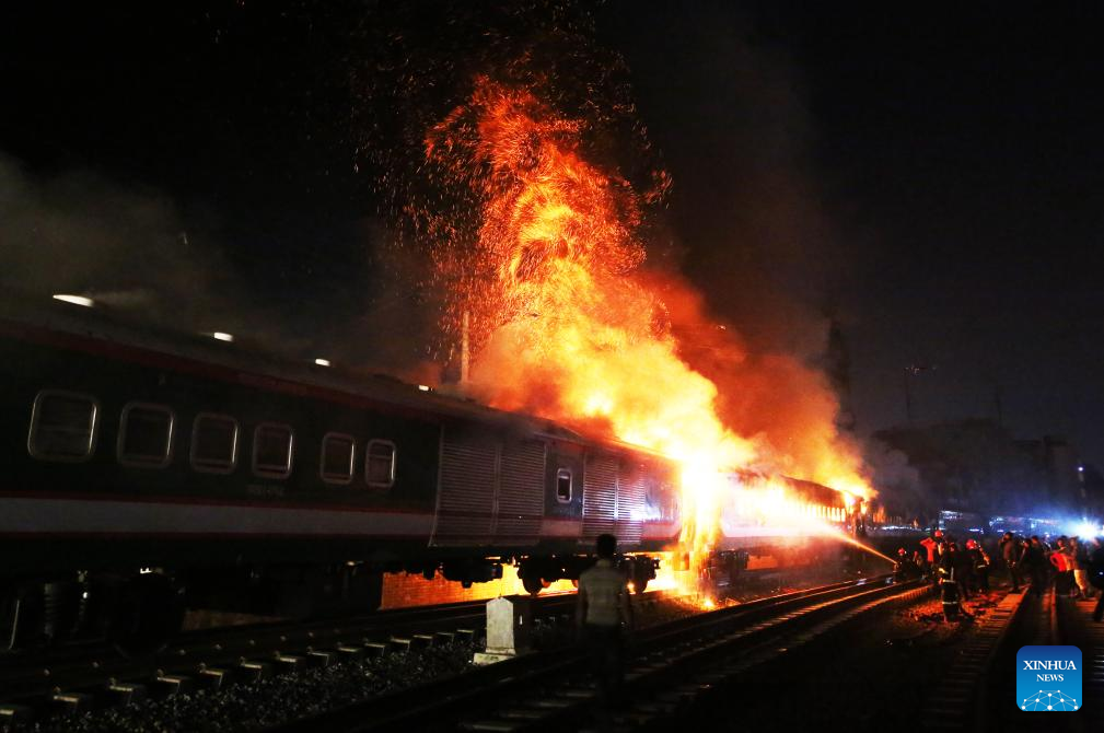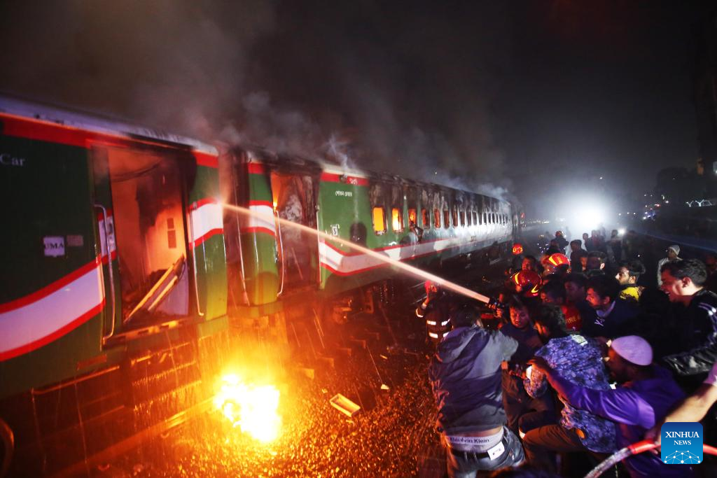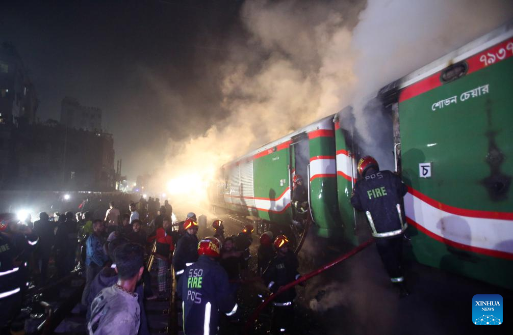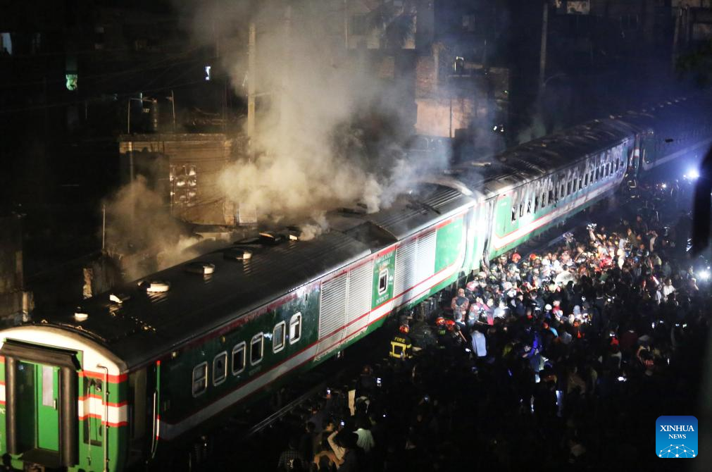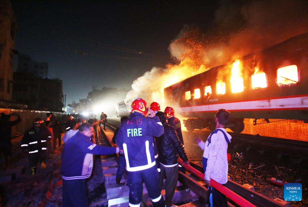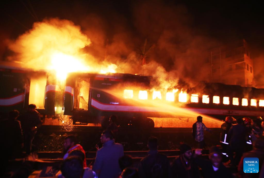 DHAKA, Jan. 5 (Xinhua) -- At least four people were killed as a passenger train caught fire in Bangladeshi capital Dhaka on Friday night.