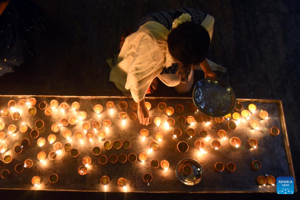 A devotee is seen lighting an oil lamp during the festival of Thai Pongal in Colombo, Sri Lanka, Jan. 15, 2024. Thai Pongal is a Tamil thanksgiving festival in celebration of a successful harvest. (Photo by Ajith Perera/Xinhua)