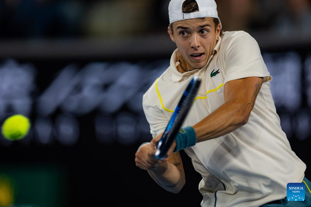 MELBOURNE, Australia, Jan. 19 (Xinhua) -- World No. 1 Iga Swiatek survived a major scare on Thursday, while men's No. 2 Carlos Alcaraz also battled through to the third round at the Australian Open as women's top-five seeds Elena Rybakina and Jessica Pegula crashed out.