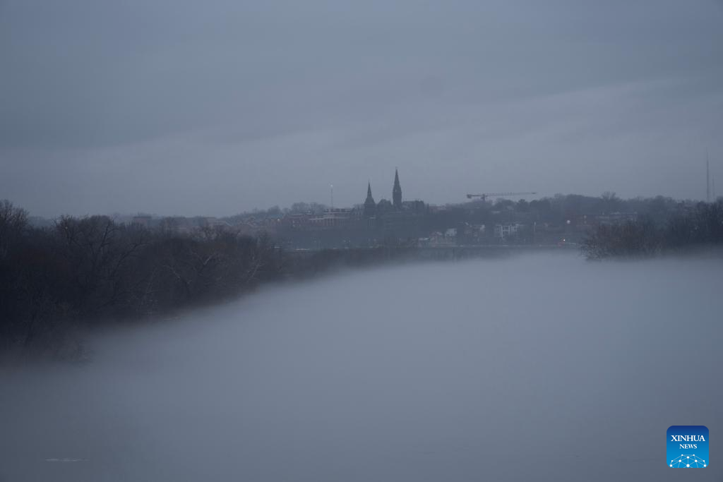 This photo taken on Jan. 25, 2024 shows buildings shrouded in fog in Washington, D.C., the United States. (Xinhua/Liu Jie)