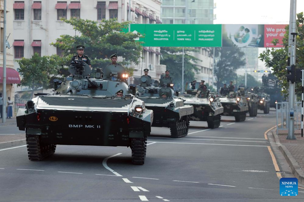 The Independence Day parade rehearsal is held in Colombo, Sri Lanka, Jan. 30, 2024. Sri Lanka will celebrate its 76th Independence Day on Feb. 4. (Photo by Ajith Perera/Xinhua)