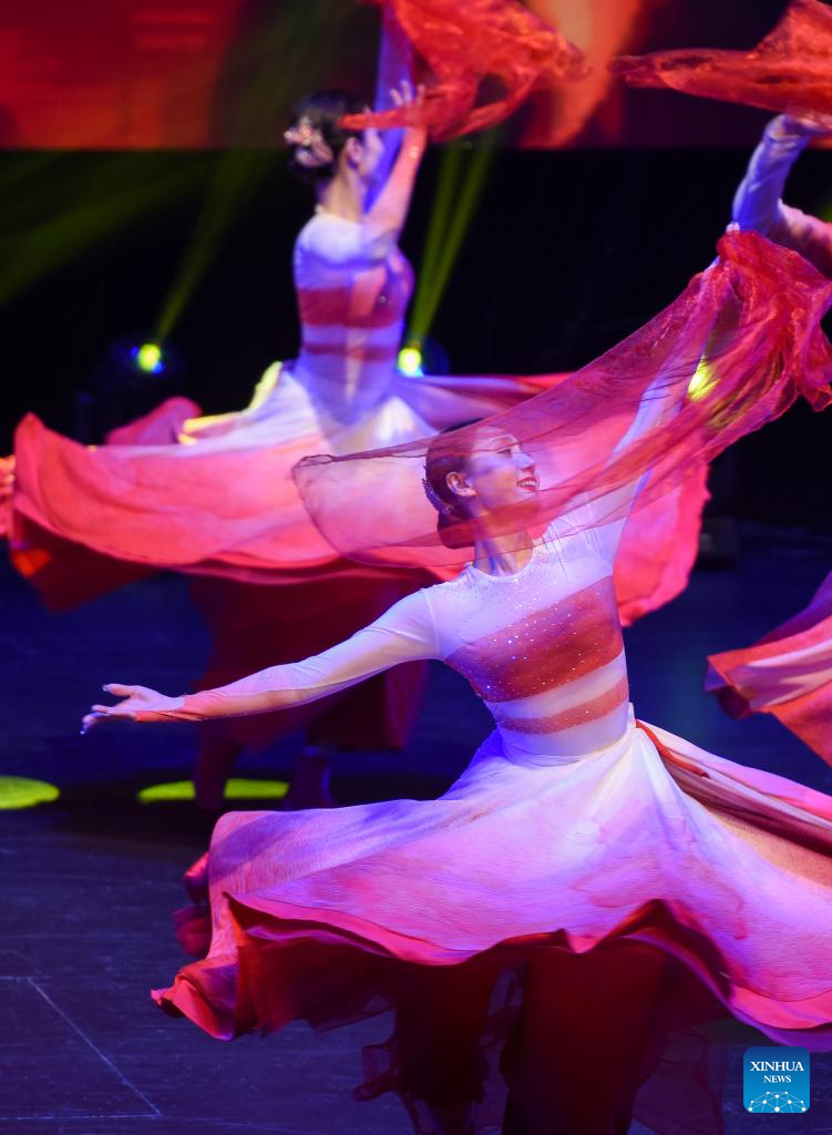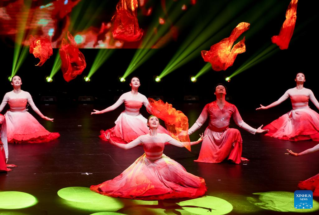 Performers dance during the "Festival of Spring" Chinese Lunar New Year Gala Night in Auckland, New Zealand, Feb. 13, 2024. The "Festival of Spring" Chinese Lunar New Year Gala Night was held on Tuesday night in Auckland, the largest city of New Zealand.