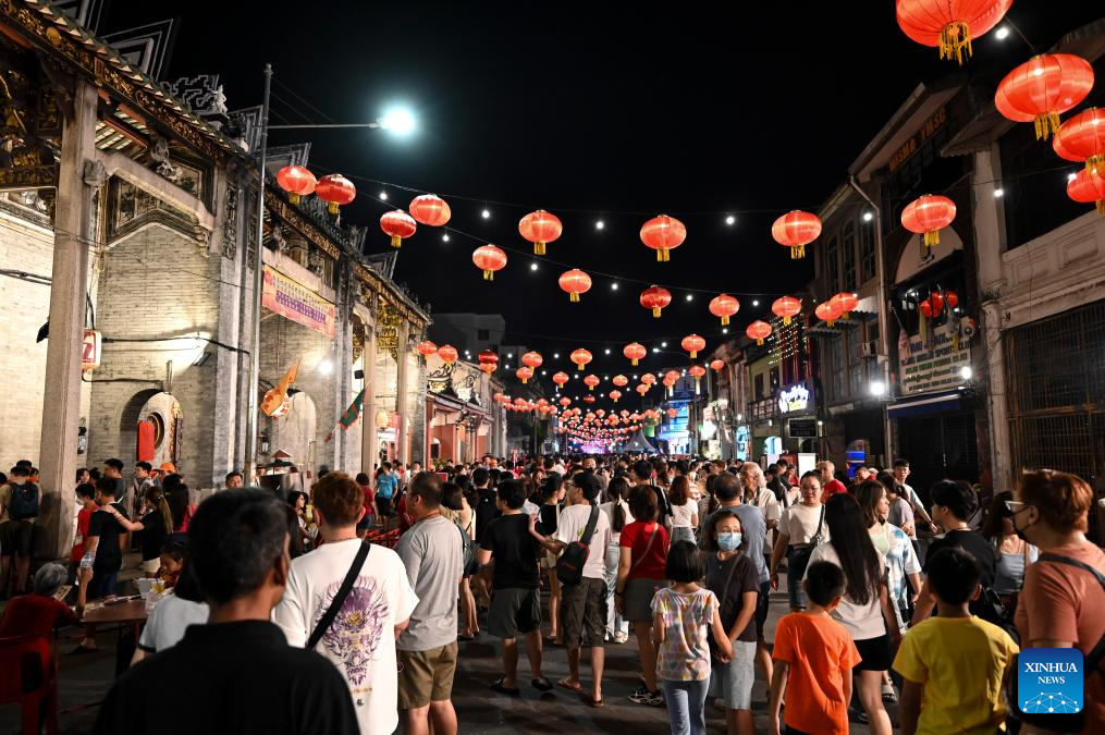 People attend the Penang Chinese New Year Celebration in George Town, Penang, Malaysia, Feb. 18, 2024. (Photo by Xu Xinyu/Xinhua)