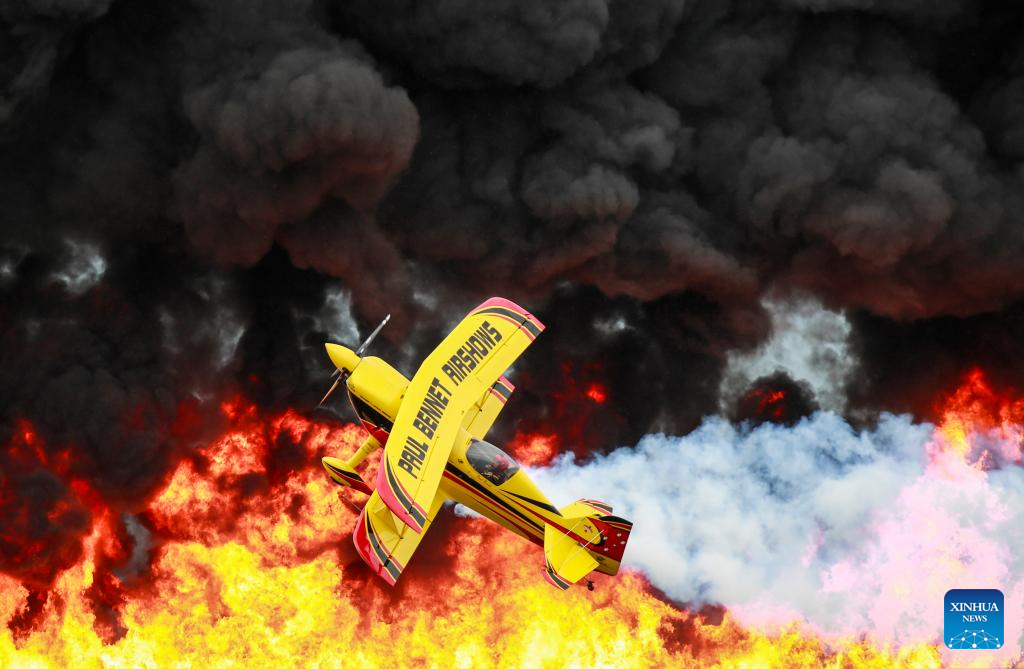 An aircraft performs during the Airshow Downunder Shellharbour at Shellharbour Airport (formerly Illawarra Regional Airport), some 100km south of Sydney, Australia, March 2, 2024. The event, formerly known as "Wings Over Illawarra," has been renamed "Airshows Downunder Shellharbour." The brand new airshow takes place from March 1 to 3, 2024 and will be held every other year. (Xinhua/Ma Ping)