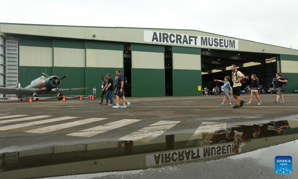 Visitors walk past the aircraft museum during the Airshow Downunder Shellharbour at Shellharbour Airport (formerly Illawarra Regional Airport), some 100km south of Sydney, Australia, March 2, 2024. The event, formerly known as "Wings Over Illawarra," has been renamed "Airshows Downunder Shellharbour." The brand new airshow takes place from March 1 to 3, 2024 and will be held every other year. (Xinhua/Ma Ping)