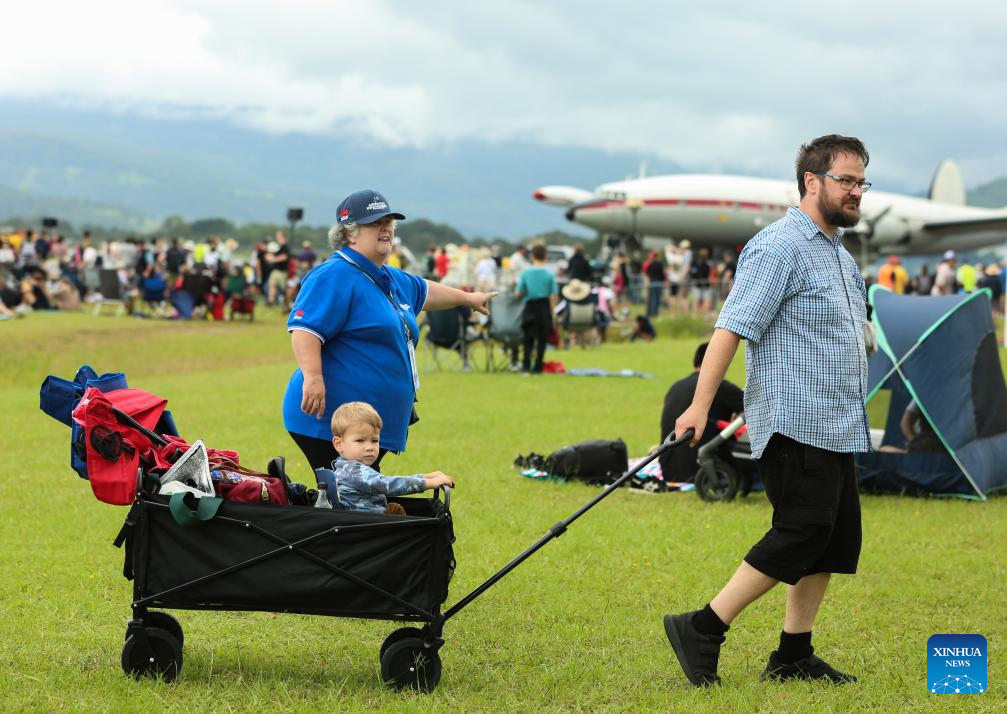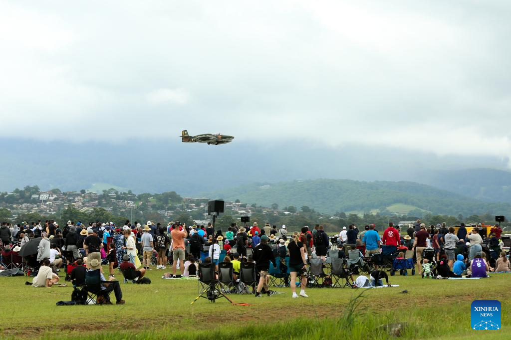 People attend the Airshow Downunder Shellharbour at Shellharbour Airport (formerly Illawarra Regional Airport), some 100km south of Sydney, Australia, March 2, 2024. The event, formerly known as "Wings Over Illawarra," has been renamed "Airshows Downunder Shellharbour." The brand new airshow takes place from March 1 to 3, 2024 and will be held every other year. (Xinhua/Ma Ping)