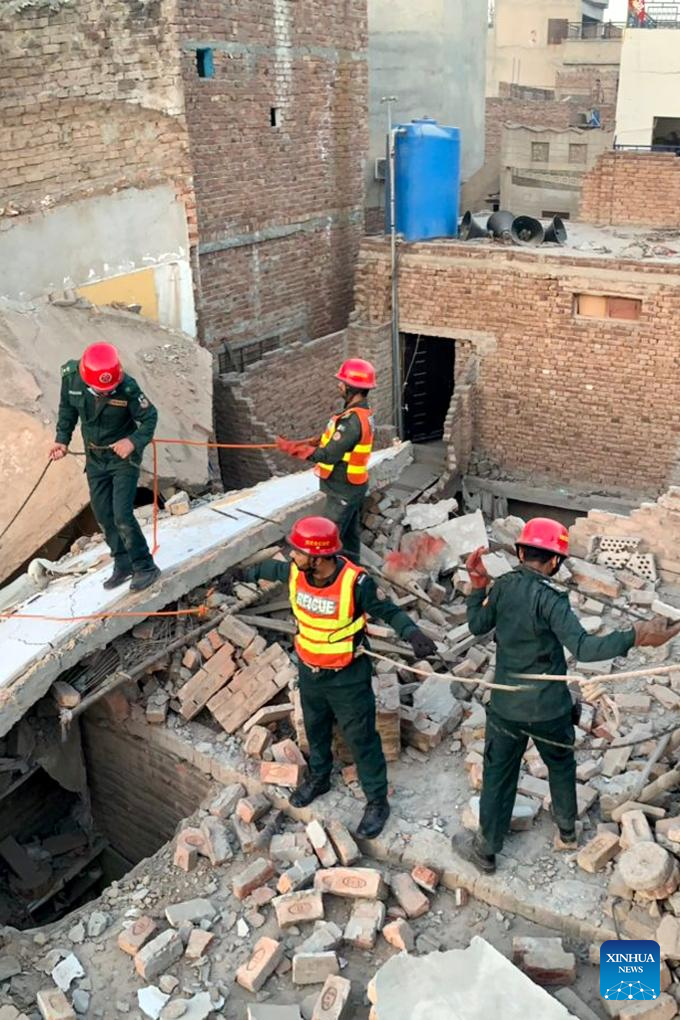 ISLAMABAD, March 12 (Xinhua) -- At least 9 people were killed and two others severely injured on Tuesday after a residential building collapsed in Multan city of Pakistan's eastern Punjab province, local authorities said.