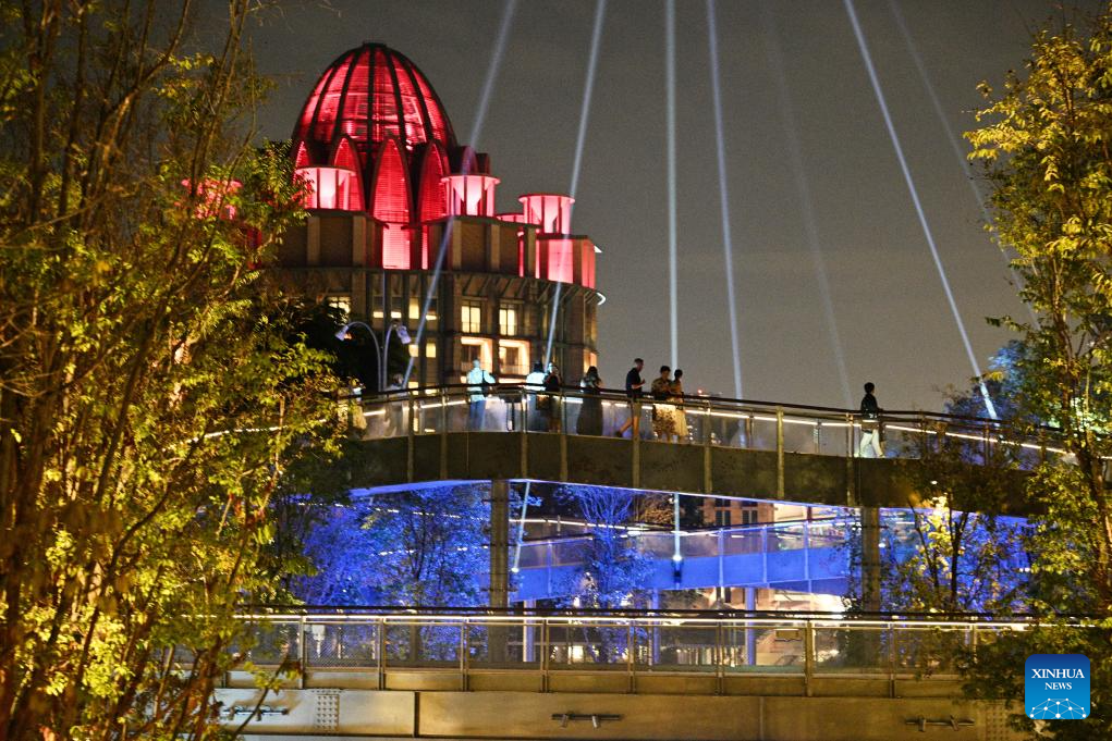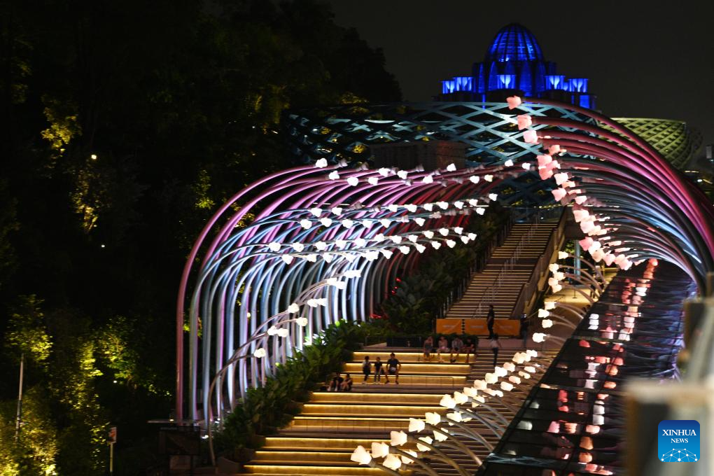 People attend a preview event of Sentosa Sensoryscape, the latest attraction on Sentosa Island, Singapore, March 11, 2024.