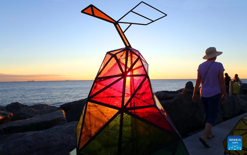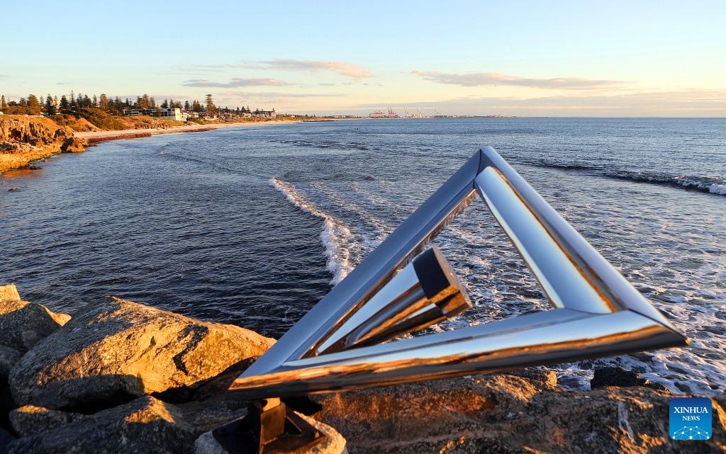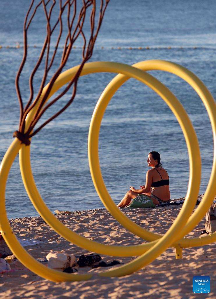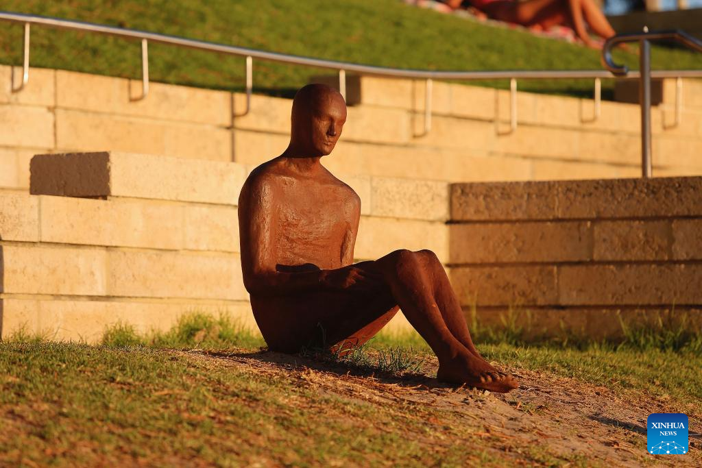 This photo taken on March 13, 2024 shows an artwork on Cottesloe Beach in Perth, Australia. The 20th "Sculpture by the Sea, Cottesloe" is held here from March 1 to March 18 this year. (Photo by Zhou Dan/Xinhua)