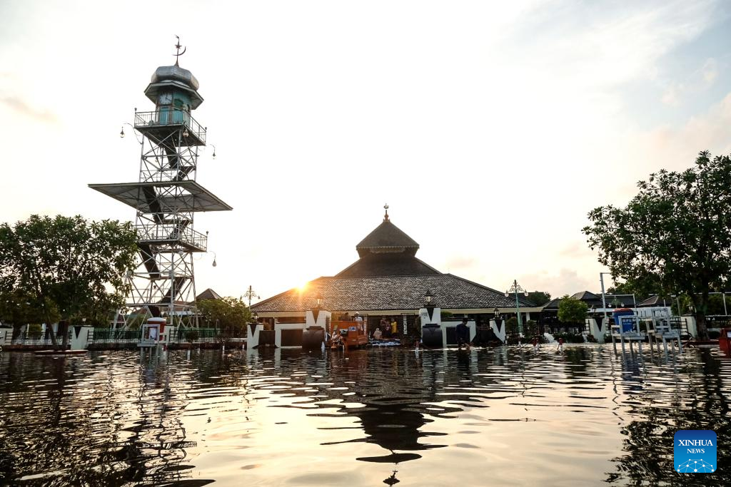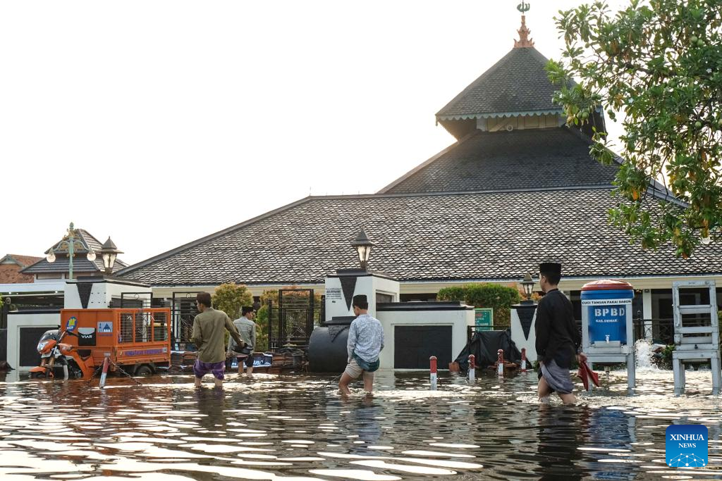 This photo taken on March 19, 2024 shows a flooded area in front of the Great Mosque of Demak in Demak Regency, Central Java, Indonesia.