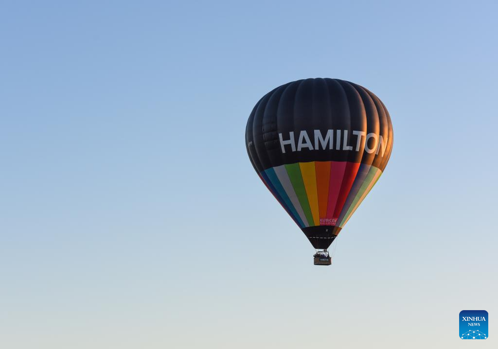 A hot-air balloon is seen during the Balloons Over Waikato Festival in Hamilton, New Zealand, March 20, 2024. The festival is held here from March 19 to 23 this year. (Xinhua/Guo Lei)