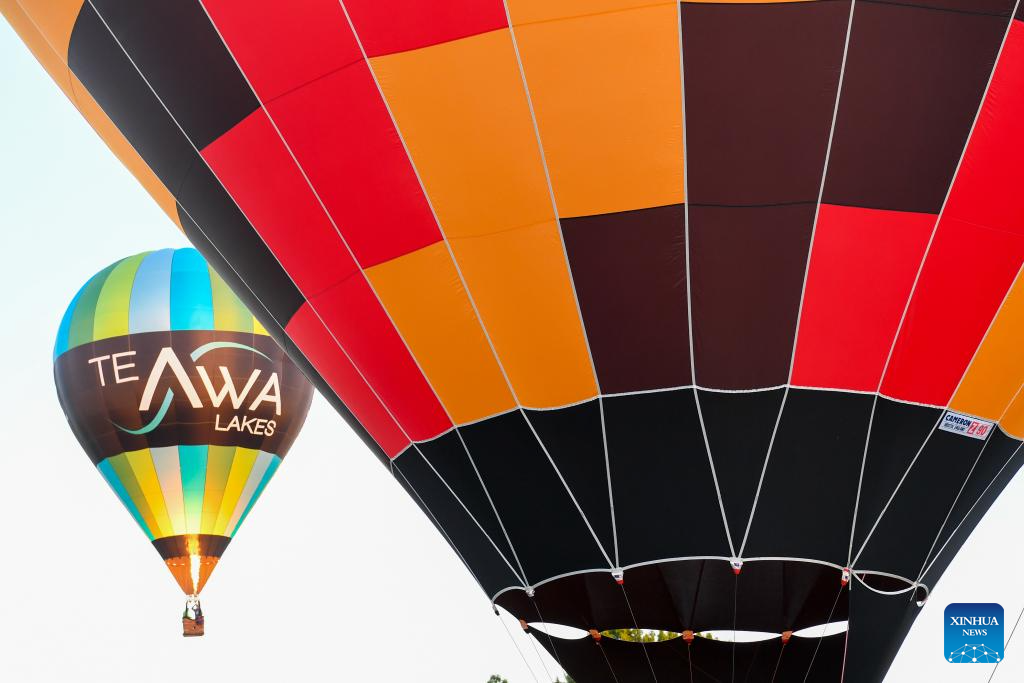 Hot-air balloons are seen during the Balloons Over Waikato Festival in Hamilton, New Zealand, March 20, 2024. The festival is held here from March 19 to 23 this year. (Xinhua/Guo Lei)