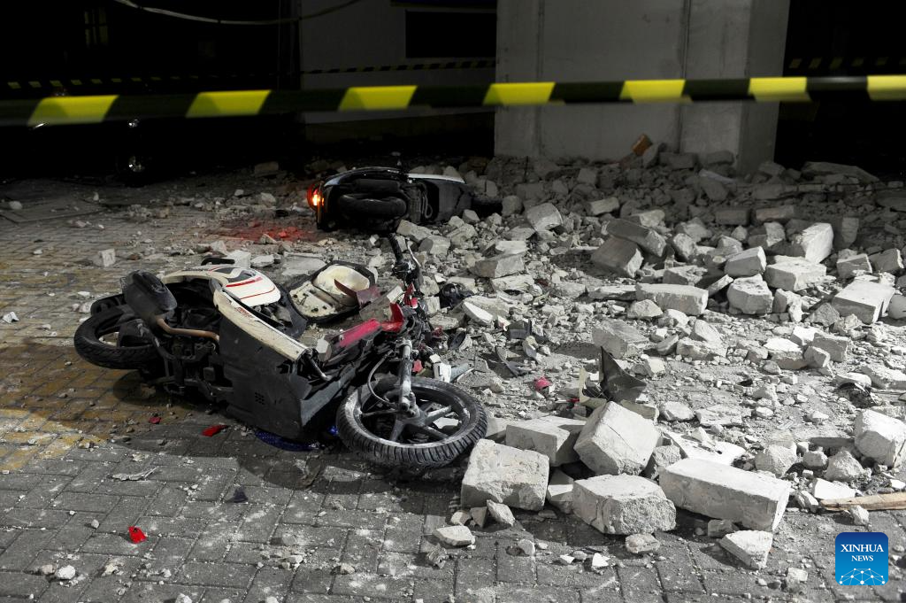 A damaged area is seen after an earthquake measuring 6.6 on the Richter scale at a hospital in Surabaya, East Java, Indonesia, on March 22, 2024. An earthquake measuring 6.0 on the Richter scale struck off East Java on Friday without triggering a tsunami, the country's meteorology, climatology and geophysics agency said. (Photo by Sahlan Kurniawan/Xinhua)