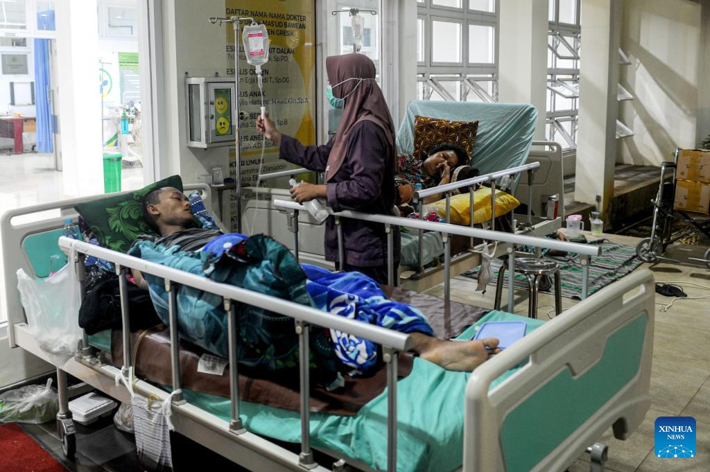 A health worker takes care of patients at Bawean Island, East Java, Indonesia, March 23, 2024. An earthquake measuring 6.0 on the Richter scale struck off Indonesia's province of East Java on Friday without triggering a tsunami, the country's meteorology, climatology and geophysics agency said. (Photo by Sahlan Kurniawan/Xinhua)