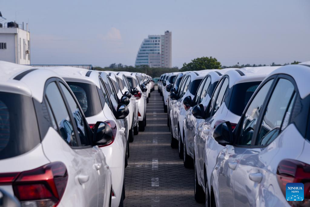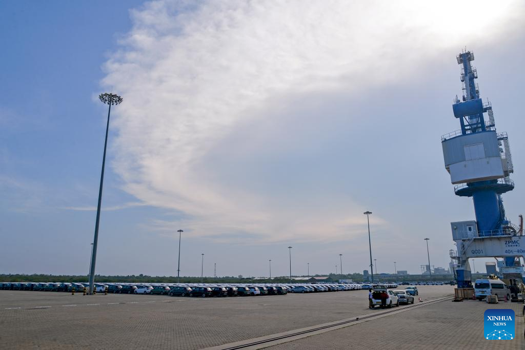 Vehicles are seen at the Hambantota Port in Sri Lanka, March 28, 2024. Located in the south of Sri Lanka, the Hambantota Port is one of the signature projects of Belt and Road cooperation between China and Sri Lanka. (Xinhua/Xu Qin)