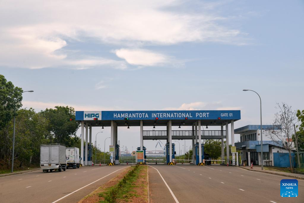 Photo taken on March 28, 2024 shows an entry to the Hambantota Port in Sri Lanka. Located in the south of Sri Lanka, the Hambantota Port is one of the signature projects of Belt and Road cooperation between China and Sri Lanka. (Xinhua/Xu Qin)