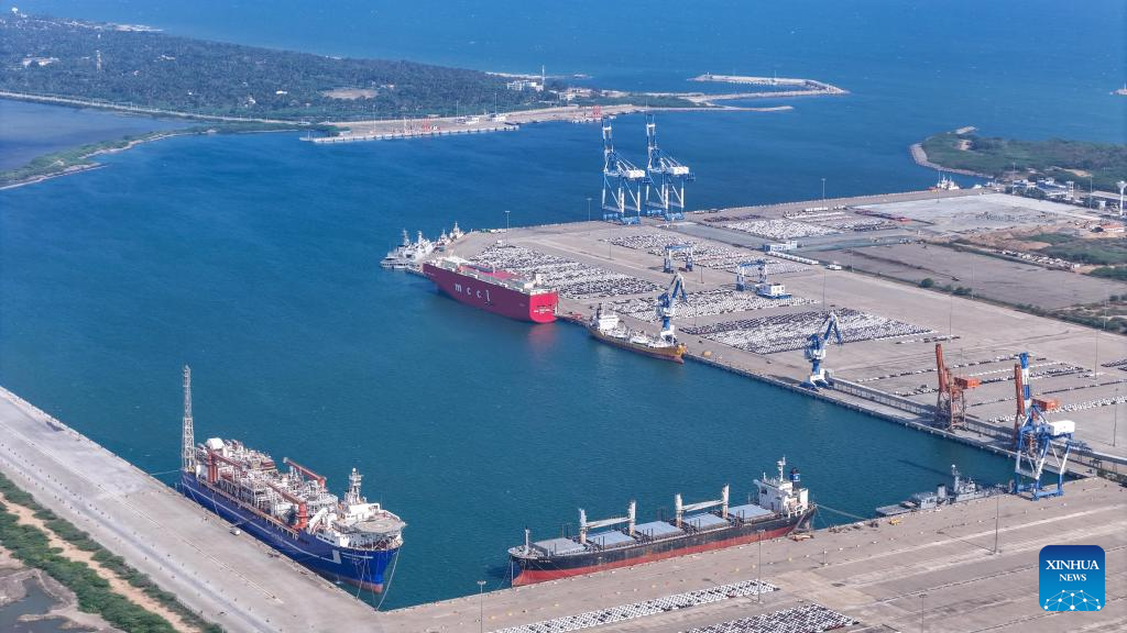 The Hambantota Port is seen in Sri Lanka, March 28, 2024. Located in the south of Sri Lanka, the Hambantota Port is one of the signature projects of Belt and Road cooperation between China and Sri Lanka. (Xinhua/Xu Qin)