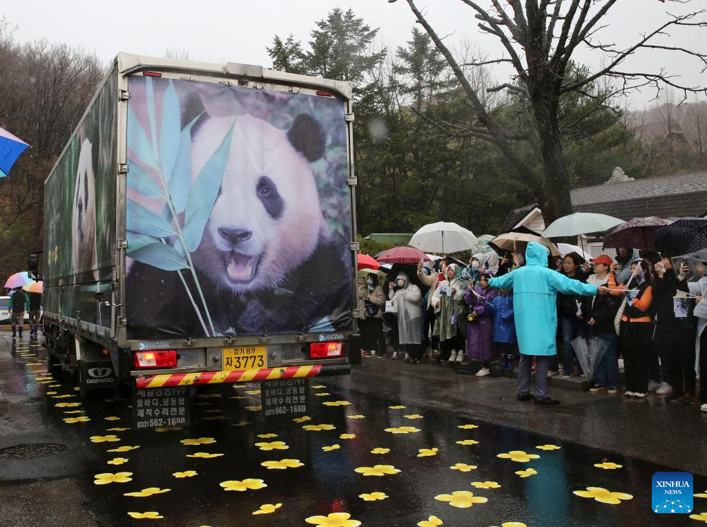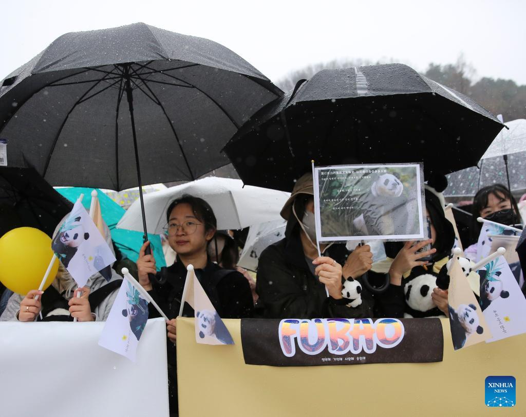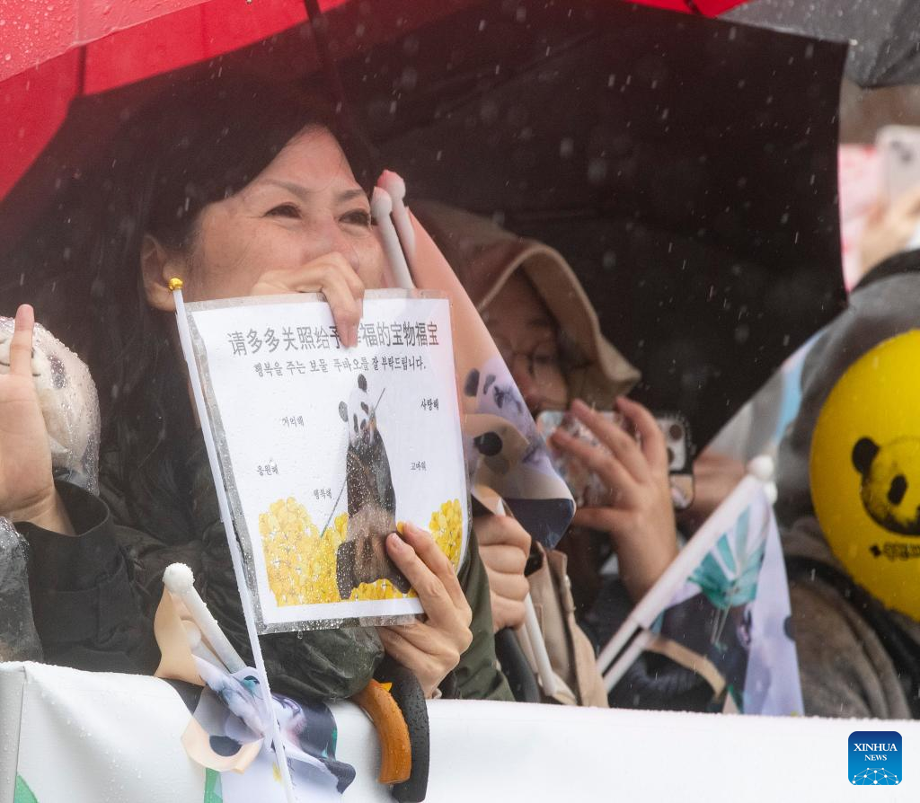 SEOUL, April 3 (Xinhua) -- Beloved Fu Bao, the first giant panda born in South Korea, left South Korea for China on Wednesday amid a large crowd's tearful farewell.