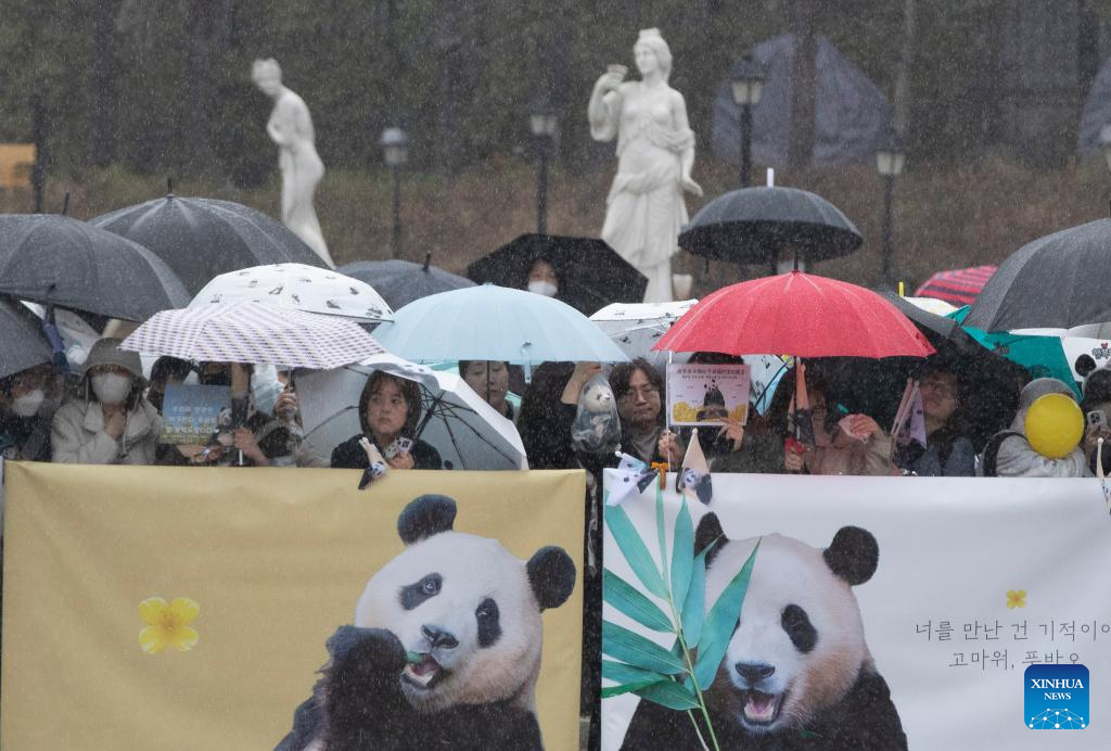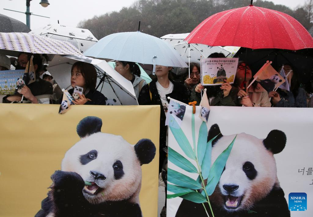 Thousands of panda lovers gathered at Everland, the country's largest theme park in Yongin, about 40 km south of the capital Seoul, to say goodbye to the country's top panda celebrity. (Xinhua/Yao Qilin)