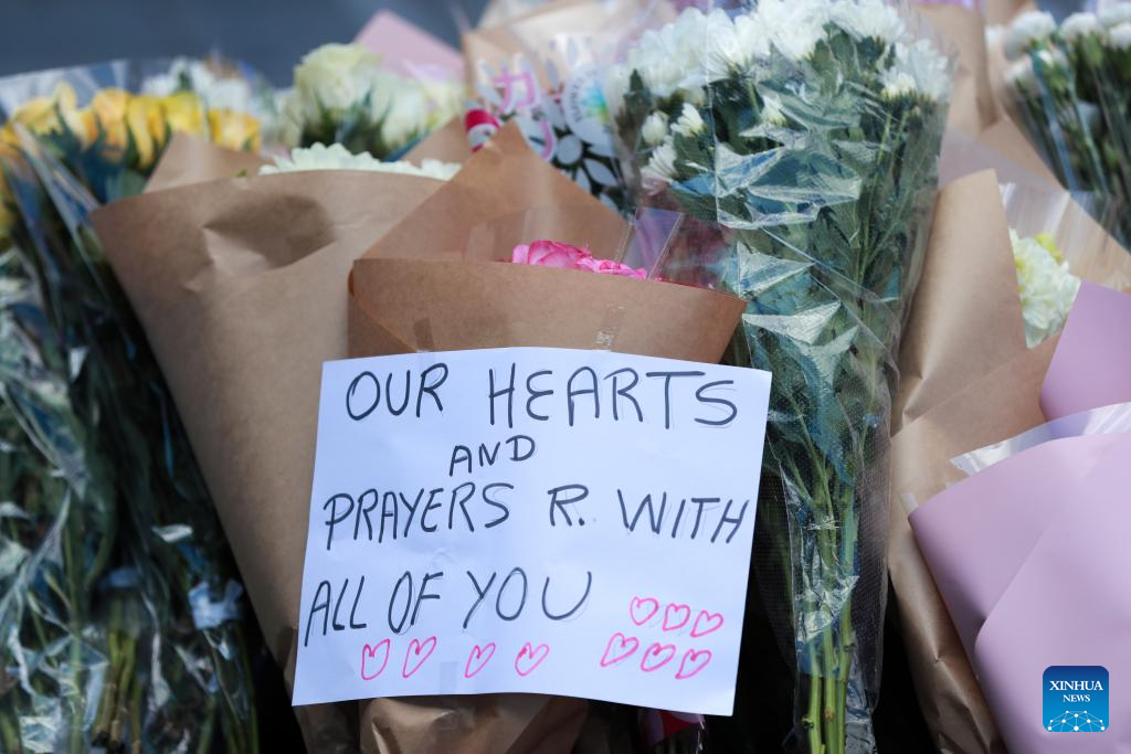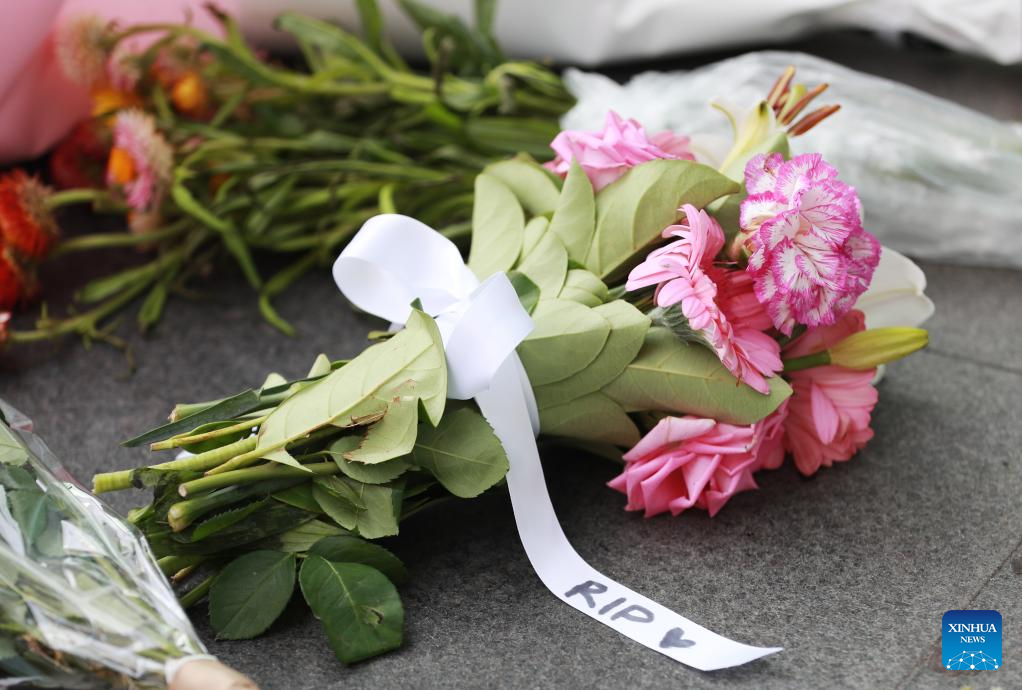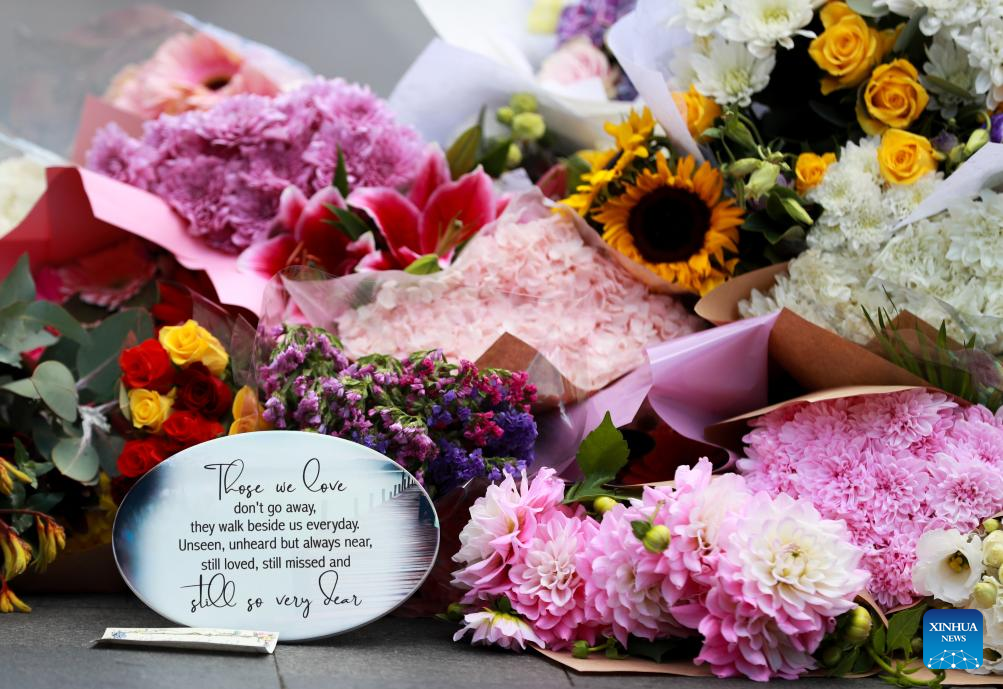 People lay flowers outside the Westfield Shopping Centre at Bondi Junction in Sydney, Australia, April 14, 2024. Australian police on Sunday identified the perpetrator of a Sydney shopping centre stabbing that killed six people, saying no intelligence would suggest the attack was driven by ideology.