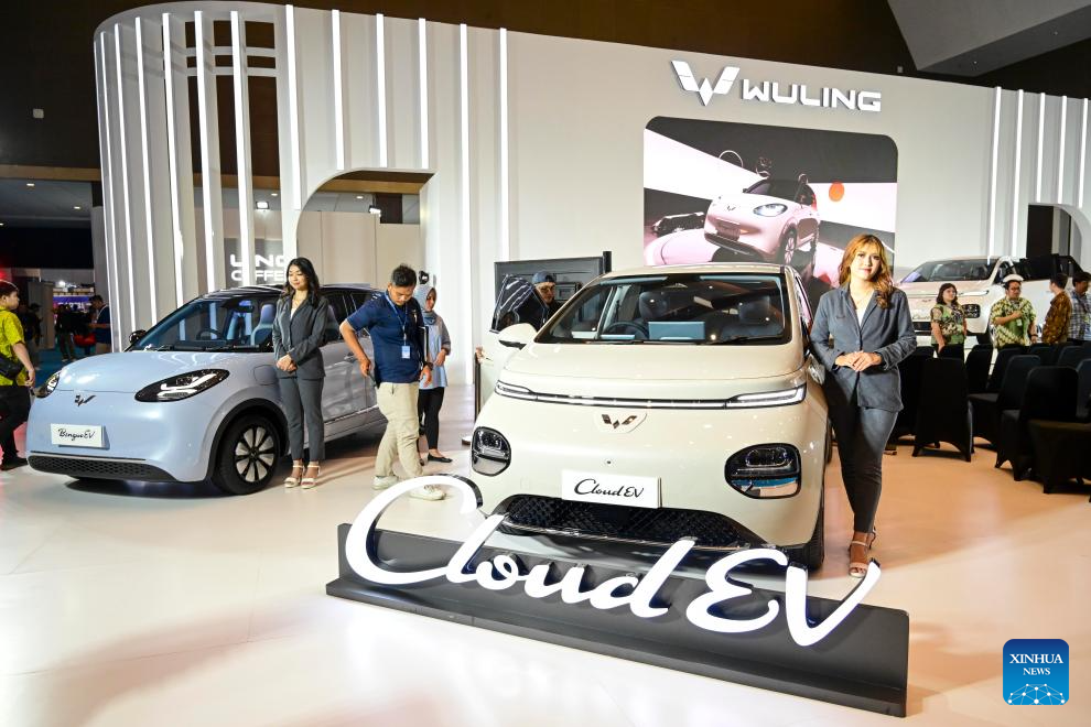 People visit Periklindo Electric Vehicle Show at JIExpo in Jakarta, Indonesia, April 30, 2024. The exhibition kicked off here on April 30 and will last until May 5. (Xinhua/Zulkarnain)