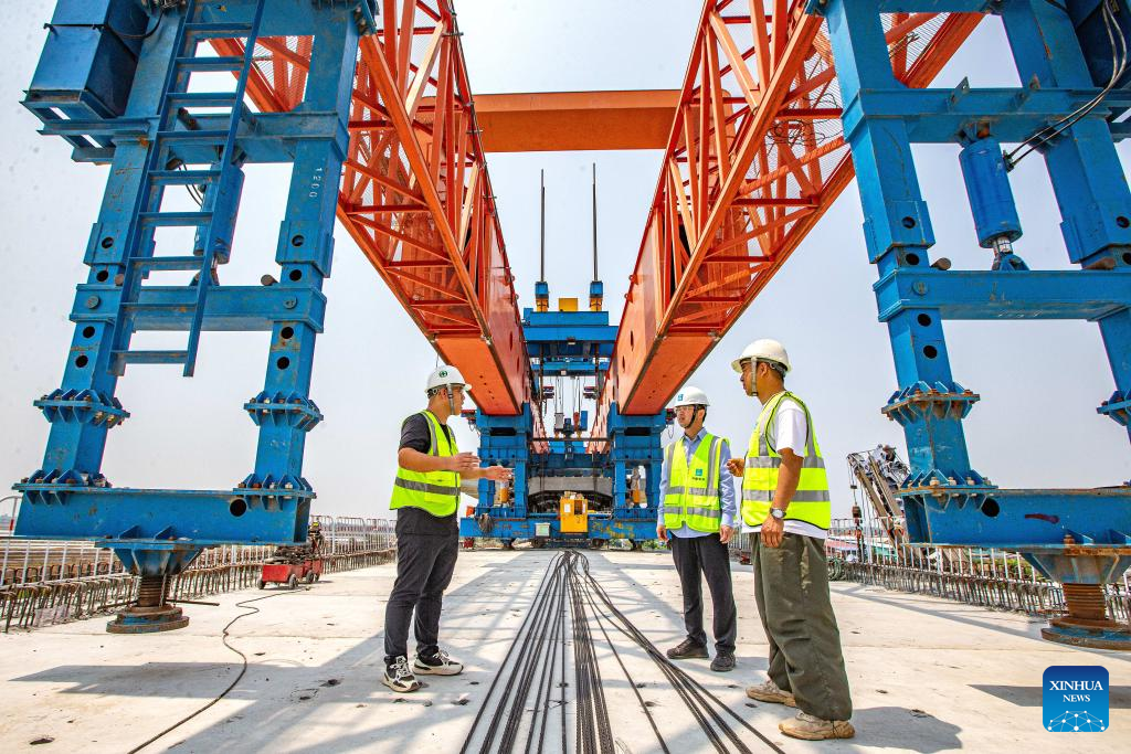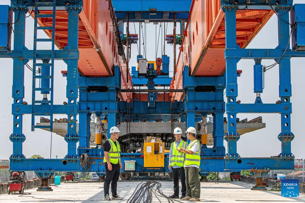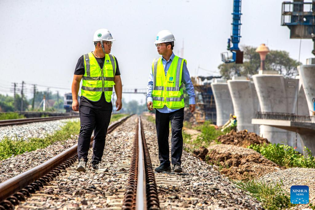 Chinese staff work at the construction site of the China-Thailand Railway in Ayutthaya, Thailand, May 1, 2024. The China-Thailand railway, an important part of the trans-Asian railway network, will be Thailand's first standard-gauge high-speed railway. (Xinhua/Wang Teng)