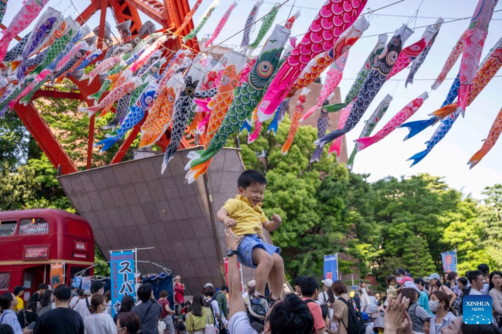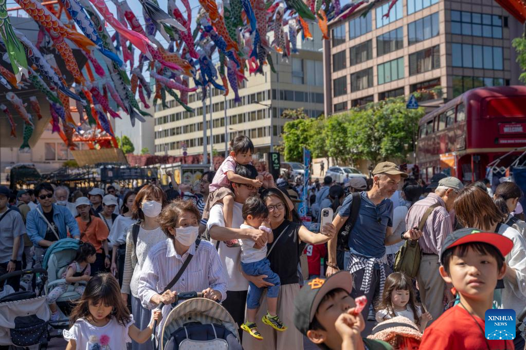 People participate in an event in celebration of the Children's day in Tokyo, Japan, on May 5, 2024. (Photo by Gu Yiping/Xinhua)
