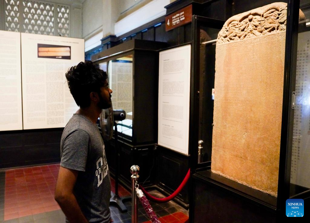 A visitor looks at an exhibit at Colombo National Museum in Colombo, Sri Lanka, May 13, 2024. (Xinhua/Wu Yue)