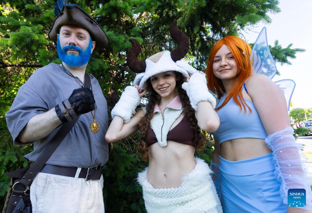 Cosplayers pose for photos during the 2024 Anime North in Toronto, Canada, on May 24, 2024. The annual three-day event kicked off here on Friday. (Photo by Zou Zheng/Xinhua)
