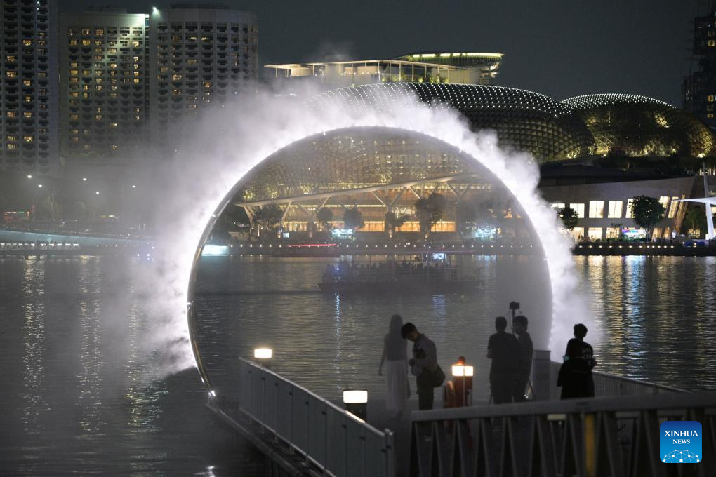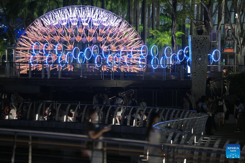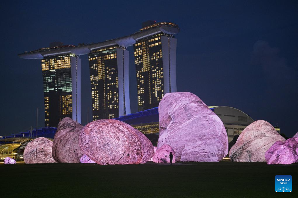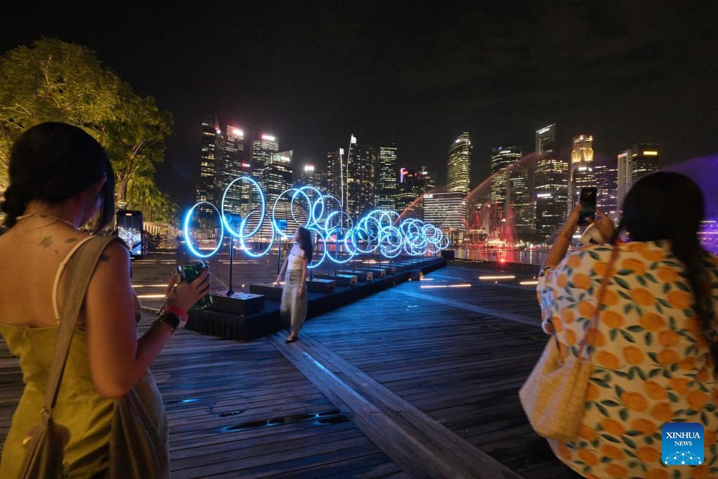 One of the art installations is seen during the media preview of the "i Light Singapore 2024" light festival, held at Singapore's Marina Bay area on May 28, 2024. (Photo by Then Chih Wey/Xinhua)