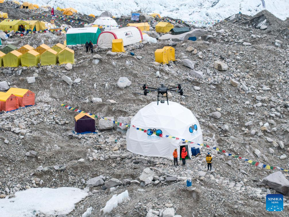 KATHMANDU/SHENZHEN, June 5 (Xinhua) -- DJI has successfully completed the first-ever drone delivery tests on Mount Qomolangma from the Nepali side, paving the way for facilitating high-altitude mountaineering, emergency rescue and environmental protection operations, the Chinese drone maker announced Wednesday.
