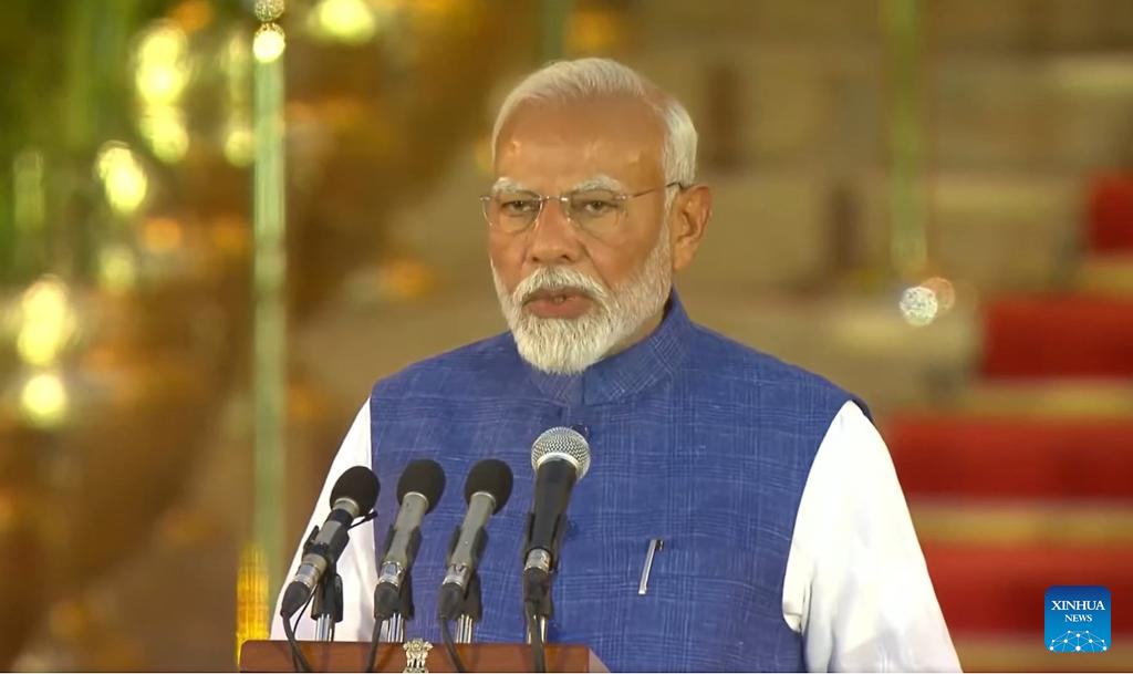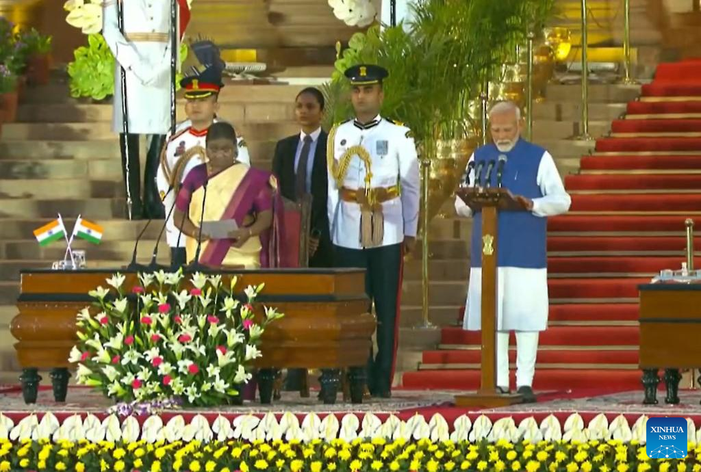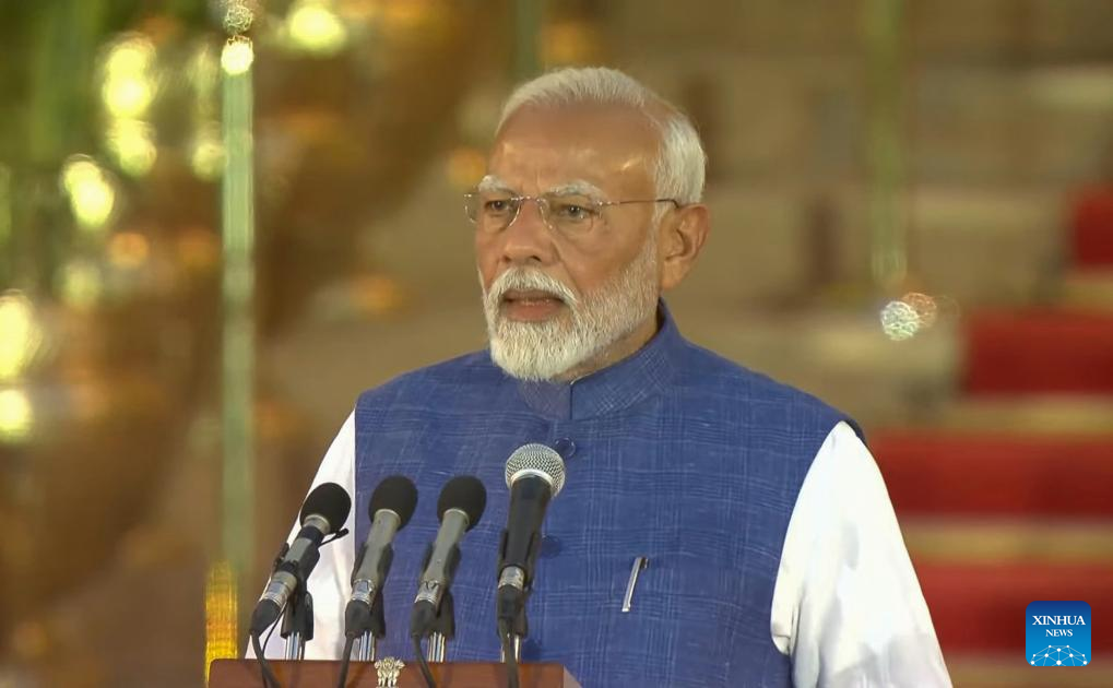 NEW DELHI, June 9 (Xinhua) -- Narendra Modi took oath as India's prime minister for the third consecutive five-year term in New Delhi on Sunday.