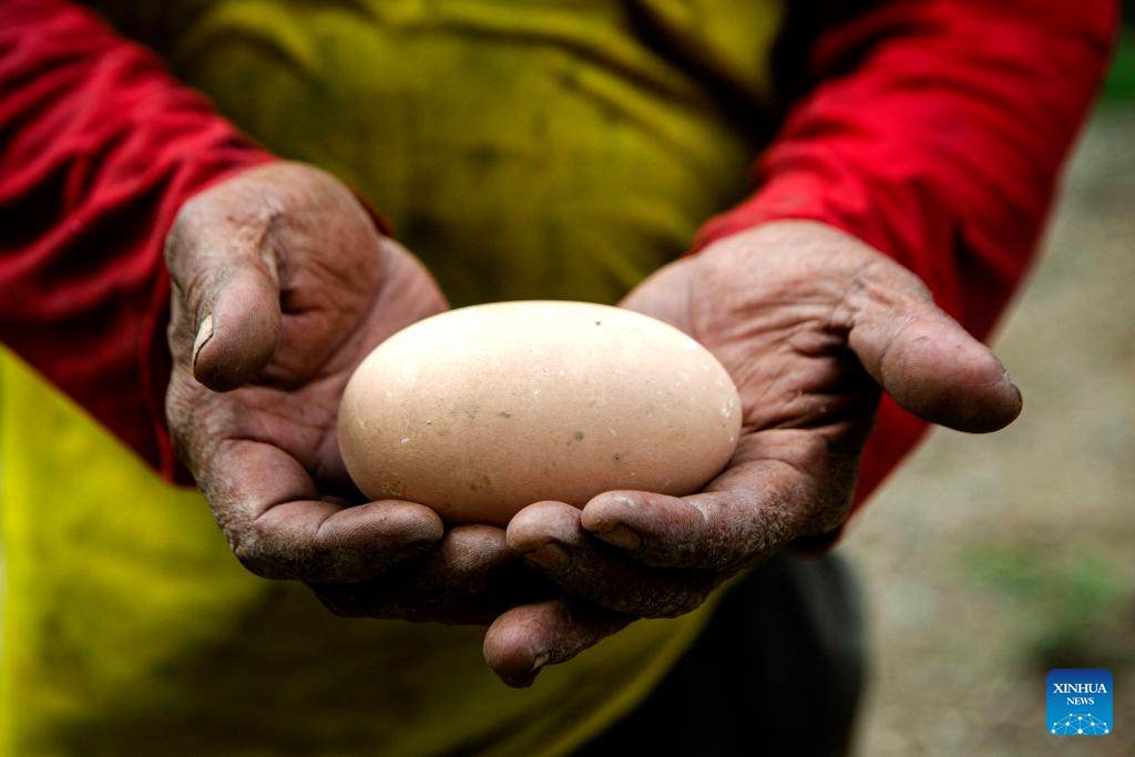 A local villager shows a maleo egg at Lore Lindu National Park in Central Sulawesi, Indonesia, June 10, 2024. The maleo (Macrocephalon maleo) is endemic to the Indonesian island of Sulawesi and the nearby island of Buton, where it lives in tropical lowland and mountain forests.