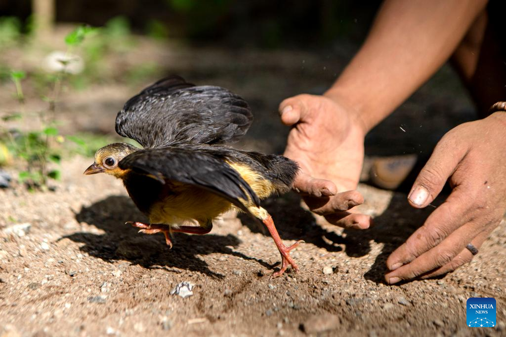 To protect this critically endangered species, a group of local villagers are creating a better living environment for the maleo by building habitats and incubators near its nesting sites, collecting and protecting eggs, and releasing chicks into the wild. (Photo by Deden Isman/Xinhua)