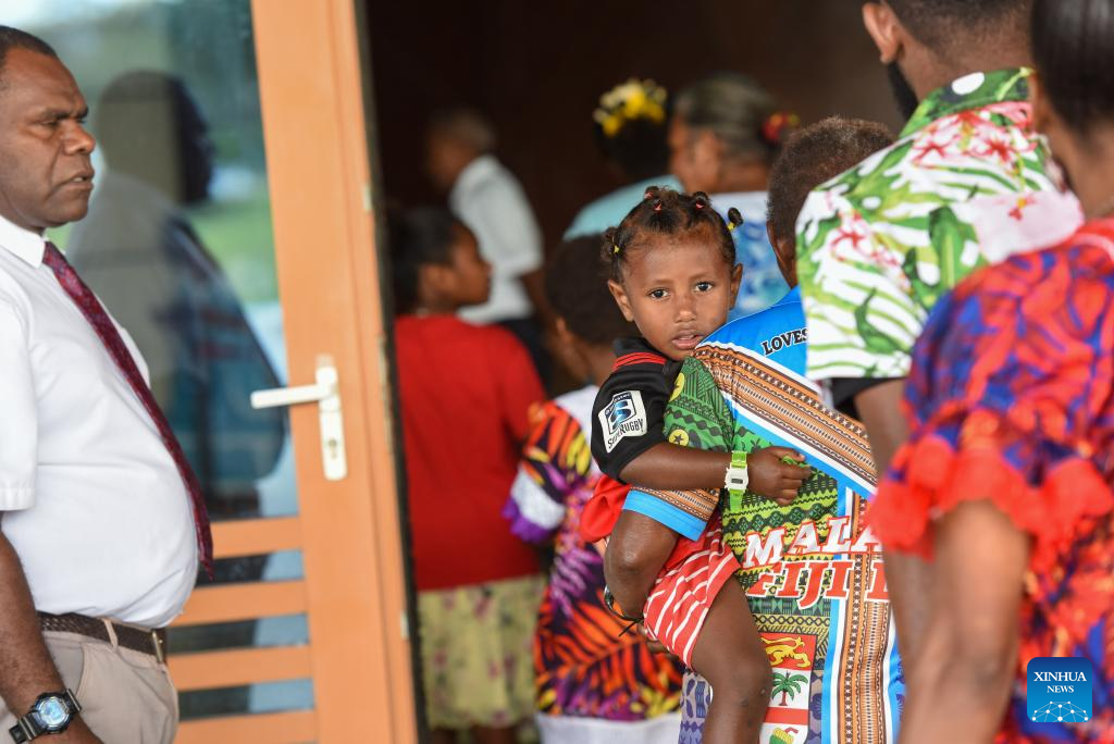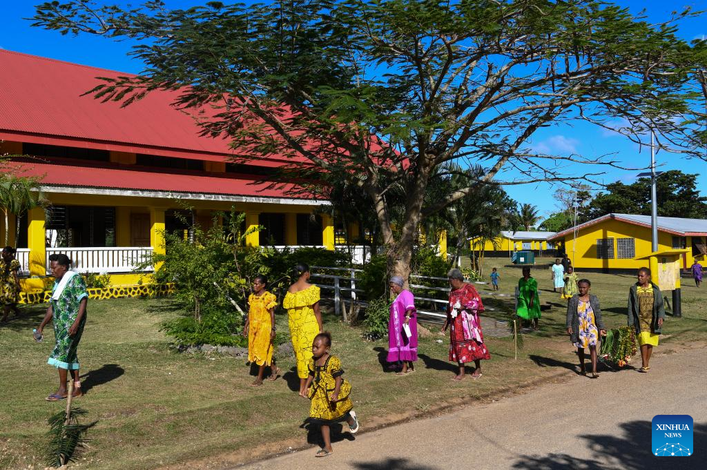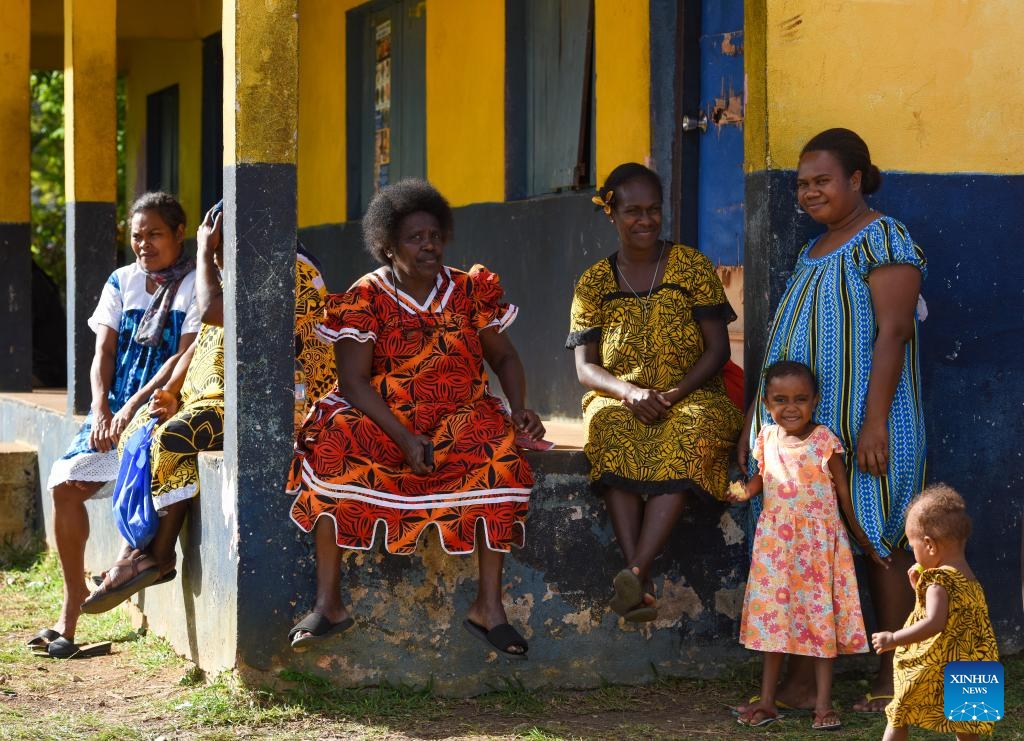 People wait to participate in community activities at a village in the suburb of Port Vila, Vanuatu, June 30, 2024. (Xinhua/Guo Lei)