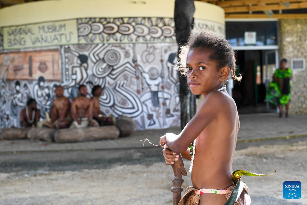 A boy waits to perform traditional dance at the national museum in Port Vila, Vanuatu, June 30, 2024. (Xinhua/Guo Lei)