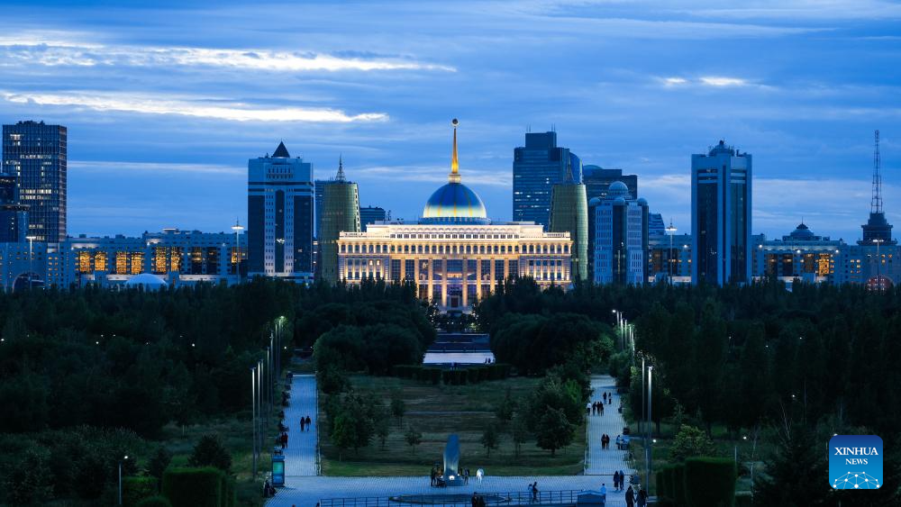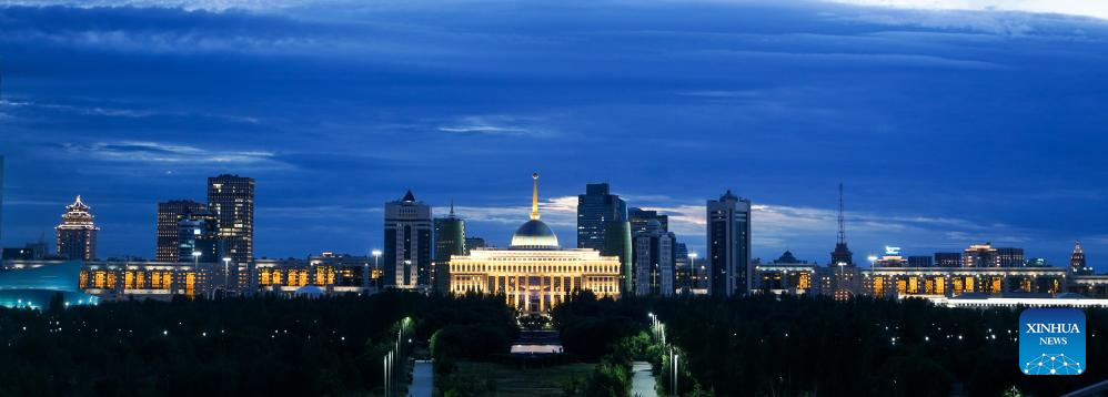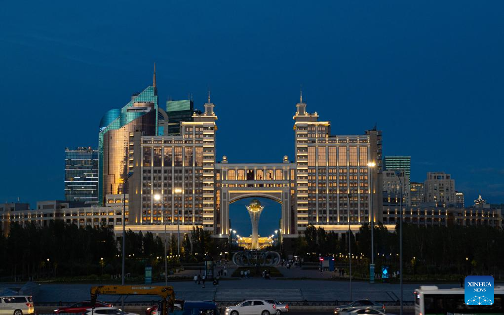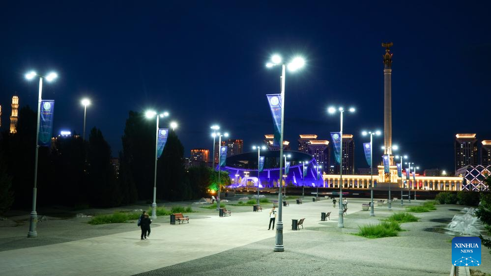 This photo taken on July 1, 2024 shows a night view of Astana, Kazakhstan. (Xinhua/Bai Xueqi)