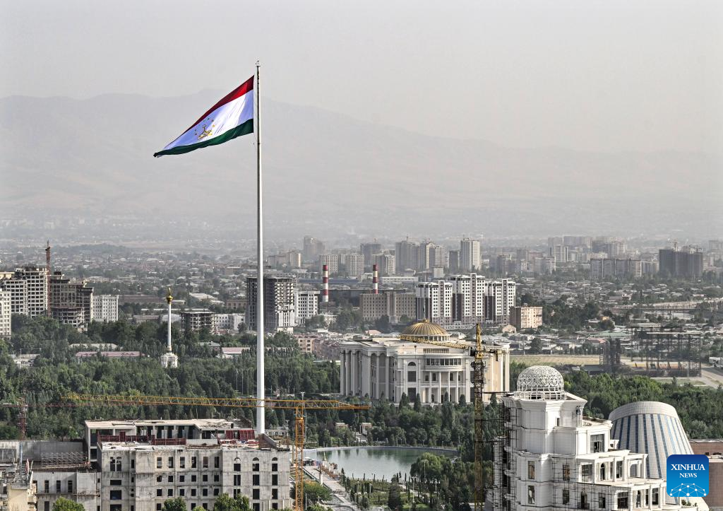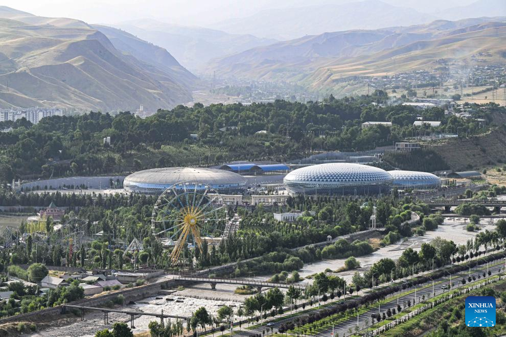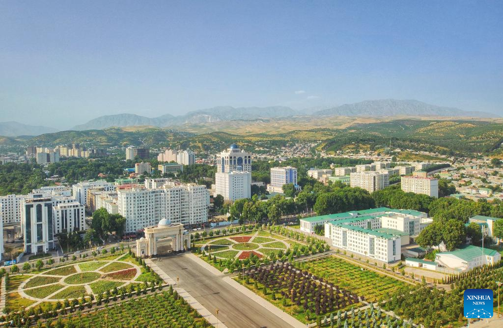 This photo taken on July 3, 2024 shows a city view of Dushanbe, Tajikistan. Tajikistan is located in the southeast of Central Asia, with a mountainous area exceeding 90 percent of its total area. Dushanbe is the capital of Tajikistan and the country's economic and cultural center. (Xinhua/Yan Yan)